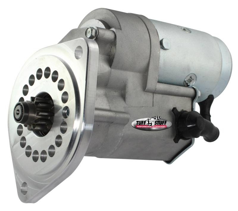 Tuff Stuff starters are hand made from premium quality new components - not remanufactured - and are quality built in USA. Most Gear Reduction style starters, which are considerably smaller than the OE starters, incorporate a mounting block that can be indexed to gain additional clearance. Starters include mounting bolts and shims where applicable. Ideal for high horsepower muscle cars, hot rods, trucks and daily-drivers. Finishes include chrome plated, zinc plated and powder coated.