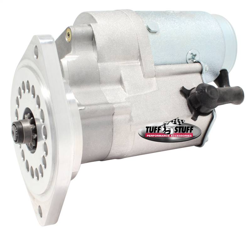 Tuff Stuff starters are hand made from premium quality new components - not remanufactured - and are quality built in USA. Most Gear Reduction style starters, which are considerably smaller than the OE starters, incorporate a mounting block that can be indexed to gain additional clearance. Starters include mounting bolts and shims where applicable. Ideal for high horsepower muscle cars, hot rods, trucks and daily-drivers. Finishes include chrome plated, zinc plated and powder coated.