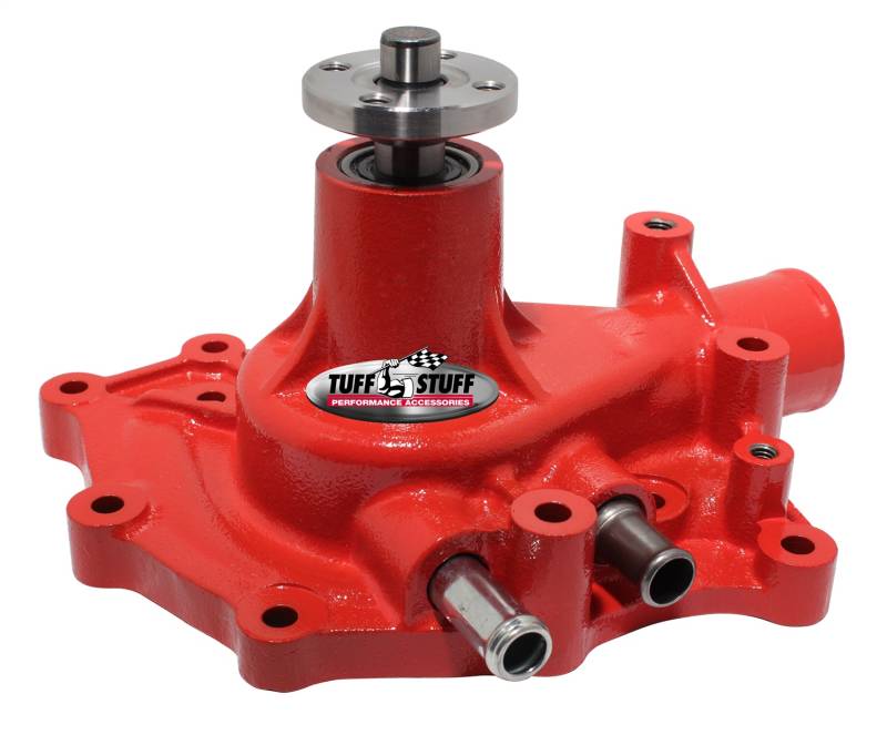 Tuff Stuff water pumps are hand made from premium quality new components - not remanufactured and are quality built in the USA. Precision-made ball/roller bearings and spin-balanced fan hub sustain higher RPMs. Our SuperCool option includes a custom water impeller that flows 30% more coolant to reduce water temperature by up to 20 degrees. Available in chrome plated, polished aluminum, powder coated or as cast finishes.