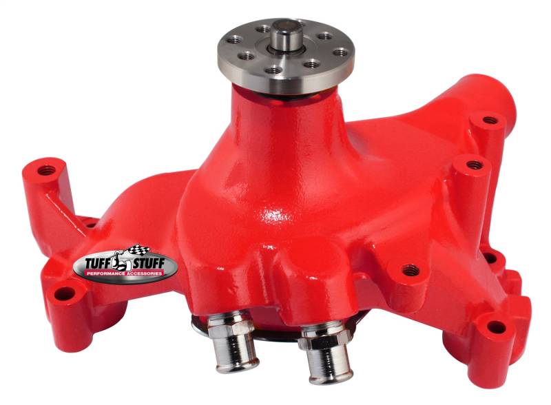Tuff Stuff water pumps are hand made from premium quality new components - not remanufactured and are quality built in the USA. Precision-made ball/roller bearings and spin-balanced fan hub sustain higher RPMs. Our SuperCool option includes a custom water impeller that flows 30% more coolant to reduce water temperature by up to 20 degrees. Available in chrome plated, polished aluminum, powder coated or as cast finishes.