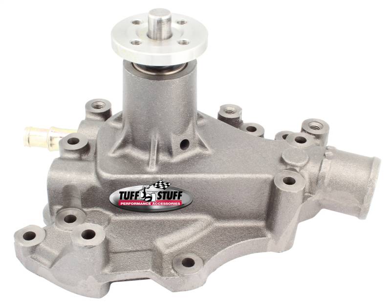 Tuff Stuff water pumps are hand made from premium quality new components - not remanufactured and are quality built in the USA. Precision-made ball/roller bearings and spin-balanced fan hub sustain higher RPMs. Our SuperCool option includes a custom water impeller that flows 30% more coolant to reduce water temperature by up to 20 degrees. Available in chrome plated, polished aluminum, powder coated or as cast finishes.