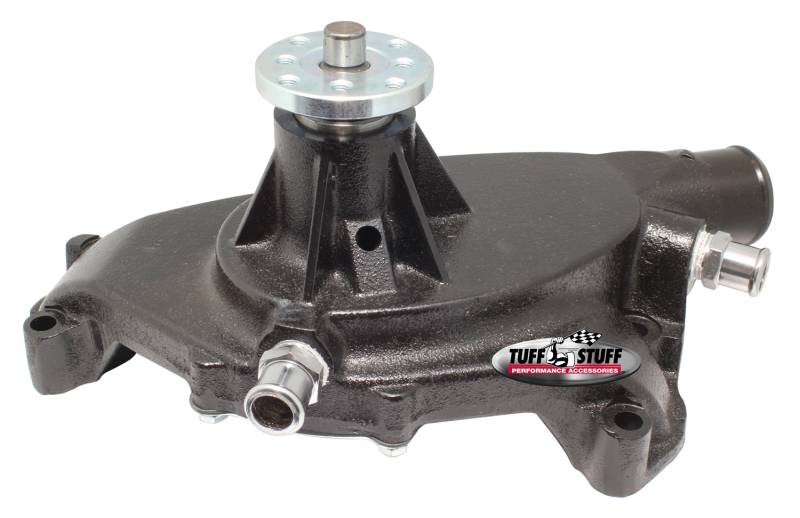 Tuff Stuff water pumps are hand made from premium quality new components - not remanufactured and are quality built in the USA. Precision-made ball/roller bearings and spin-balanced fan hub sustain higher RPMs. Our SuperCool option includes a custom water impeller that flows 30% more coolant to reduce water temperature by up to 20 degrees. Available in chrome plated, polished aluminum, powder coated or as cast finishes.