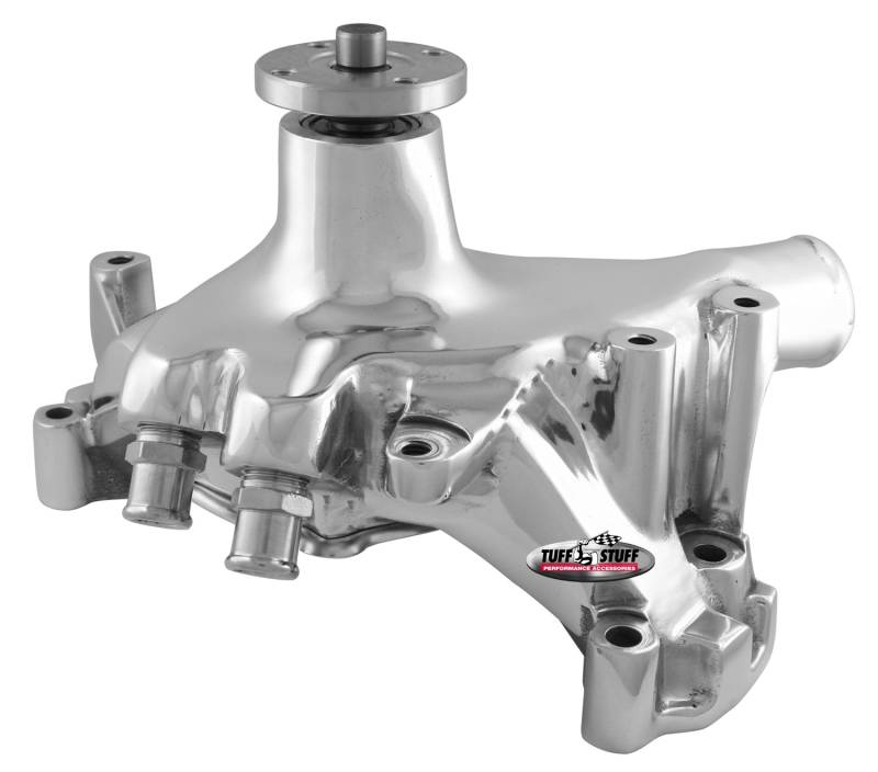 Tuff Stuff water pumps are hand made from premium quality new components - not remanufactured and are quality built in the USA. Precision-made ball/roller bearings and spin-balanced fan hub sustain higher RPMs. Our SuperCool option includes a custom water impeller that flows 30% more coolant to reduce water temperature by up to 20 degrees. Available in chrome plated, polished aluminum, powder coated or as cast finishes.