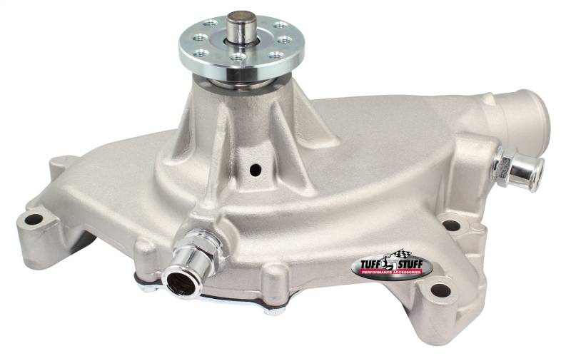 Tuff Stuff water pumps are hand made from premium quality new components - not remanufactured and are quality built in the USA. Precision-made ball/roller bearings and spin-balanced fan hub sustain higher RPMs. Our SuperCool option includes a custom water impeller that flows 30% more coolant to reduce water temperature by up to 20 degrees. Available in chrome plated, polished aluminum, powder coated or as cast finishes.