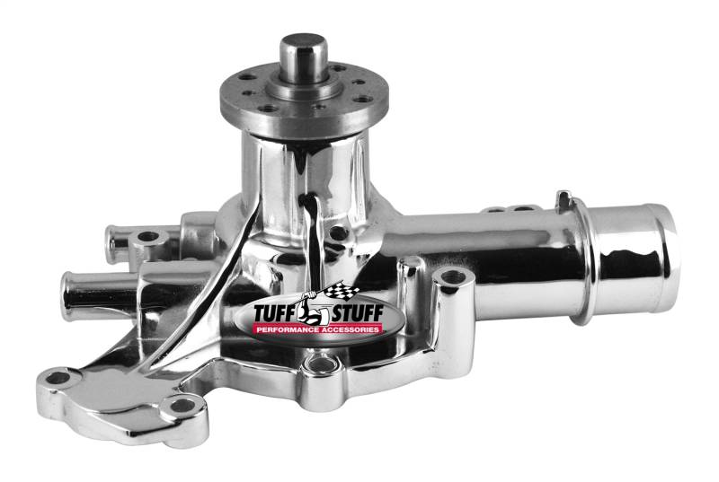 Tuff Stuff water pumps are hand made from premium quality new components - not remanufactured and are quality built in the USA. Precision-made ball/roller bearings and spin-balanced fan hub sustain higher RPMs. Available in chrome plated, polished aluminum, powder coated or as cast finishes.