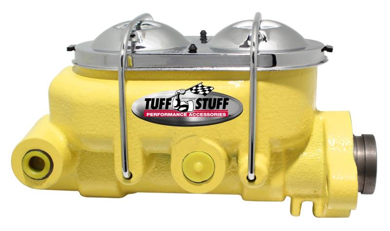 Brake Master Cylinder Univ. Dual Reservoir 1 1/8 in. Bore 9/16 in. And 1/2 in. Driver Side Ports Shallow Hole Fits Hot Rods/Customs/Muscle Cars Yellow Powdercoat 2071NCYELLOW