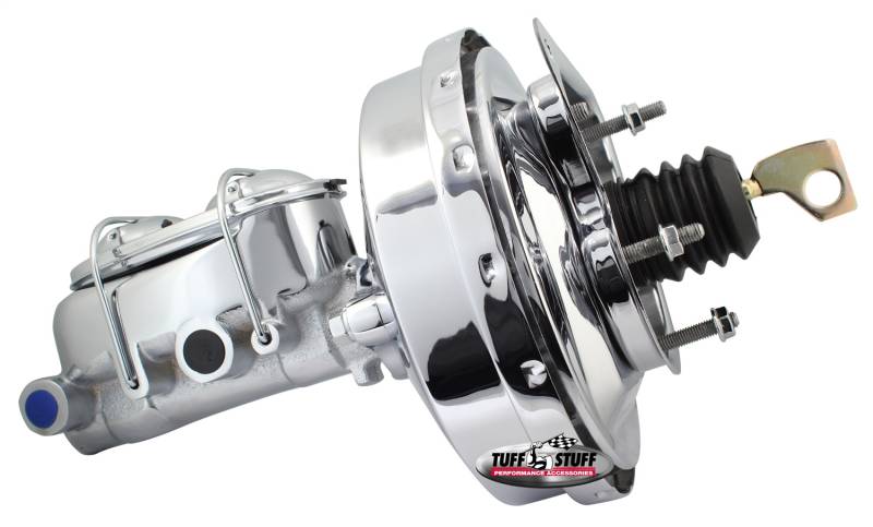Specific fit applications available in beautiful chrome plated, zinc or black powder coated finishes. 1 in. and 1-1/8 in. master cylinder bores work with disc/disc, disc/drum, and drum/drum brake set-ups. Single and dual diaphragm styles available in 7 in., 8 in., 9 in. and 11 in. diameters to fit virtually all hot rods, customs and muscle cars. 100% all new components - and every unit is vacuum tested to insure reliability. Works with many stock mounting brackets and Tuff Stuff universal brackets.
