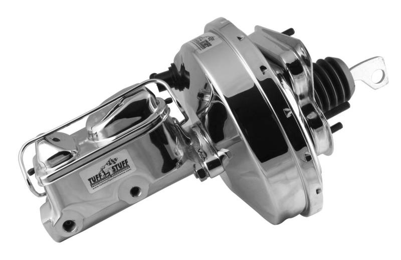 Specific fit applications available in beautiful chrome plated, zinc or black powder coated finishes. 1 in. and 1-1/8 in. master cylinder bores work with disc/disc, disc/drum, and drum/drum brake set-ups. Single and dual diaphragm styles available in 7 in., 8 in., 9 in. and 11 in. diameters to fit virtually all hot rods, customs and muscle cars. 100% all new components - and every unit is vacuum tested to insure reliability. Works with many stock mounting brackets and Tuff Stuff universal brackets.