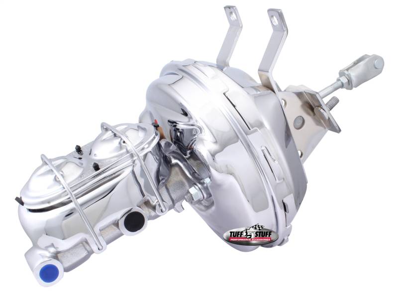Specific fit applications available in beautiful chrome plated, zinc or black powder coated finishes. 1 in. and 1-1/8 in. master cylinder bores work with disc/disc, disc/drum, and drum/drum brake set-ups. Single and dual diaphragm styles available in 7 in., 8 in., 9 in. and 11 in. diameters to fit virtually all hot rods, customs and muscle cars. 100% all new components - and every unit is vacuum tested to insure reliability. Works with many stock mounting brackets and Tuff Stuff universal brackets.