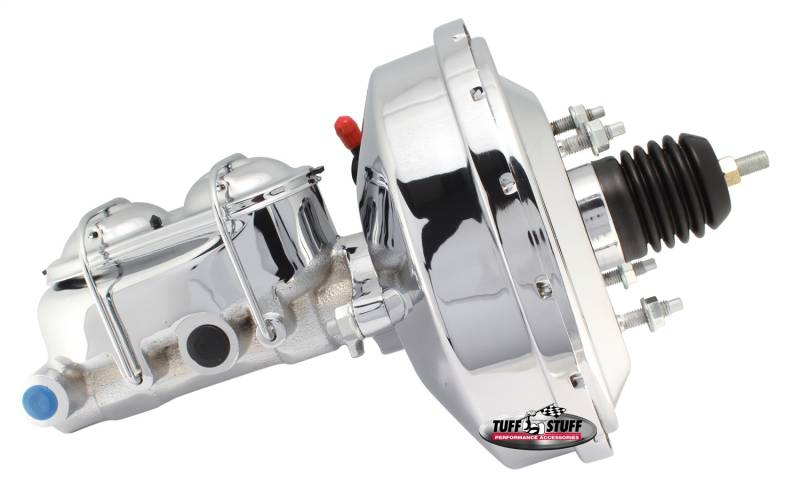 Specific fit applications available in beautiful chrome plated, zinc or black powder coated finishes. 1 in. and 1-1/8 in. master cylinder bores work with disc/disc, disc/drum, and drum/drum brake set-ups. Single and dual diaphragm styles available in 7 in., 8 in., 9 in. and 11 in. diameters to fit virtually all hot rods, customs and muscle cars. 100% all new components - and every unit is vacuum tested to insure reliability. Works with many stock mounting brackets and Tuff Stuff universal brackets.