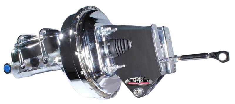 Specific fit applications available in beautiful chrome plated, zinc or black powder coated finishes. 1 in. and 1-1/8 in. master cylinder bores work with disc/disc, disc/drum, and drum/drum brake set-ups. Single and dual diaphragm styles available in 7 in., 8 in., 9 in. and 11 in. diameters to fit virtually all hot rods, customs and muscle cars. 100% all new components - and every unit is vacuum tested to insure reliability. Works with many stock mounting brackets and Tuff Stuff universal brackets.