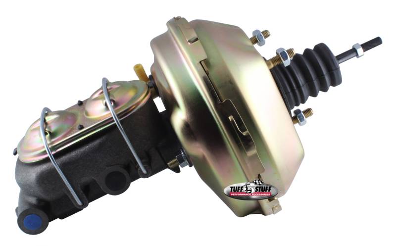 Specific fit applications available in beautiful chrome plated, zinc or black powder coated finishes. 1 in. and 1-1/8 in. master cylinder bores work with disc/disc, disc/drum, and drum/drum brake set-ups. Single and dual diaphragm styles available in 7 in., 8 in., 9 in. and 11 in. diameters to fit virtually all hot rods, customs and muscle cars. 100% all new components - and every unit is vacuum tested to insure reliability. Works with many stock mounting brackets and Tuff Stuff universal brackets.