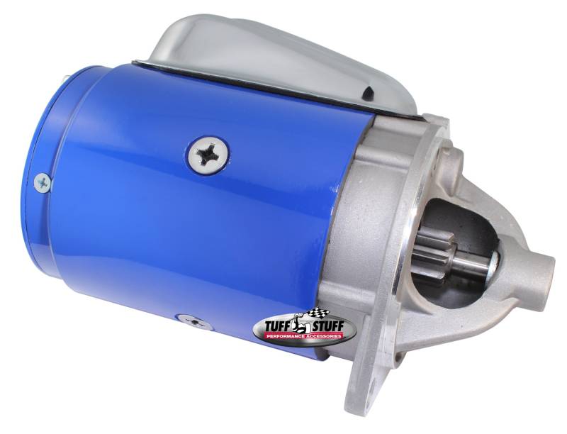 Tuff Stuff starters are hand made from premium quality new components - not remanufactured - and are quality built in USA. Most Gear Reduction style starters, which are considerably smaller than the OE starters, incorporate a mounting block that can be indexed to gain additional clearance. Starters include mounting bolts and shims where applicable. Ideal for high horsepower muscle cars, hot rods, trucks and daily-drivers. Finishes include chrome plated, zinc plated and powder coated.