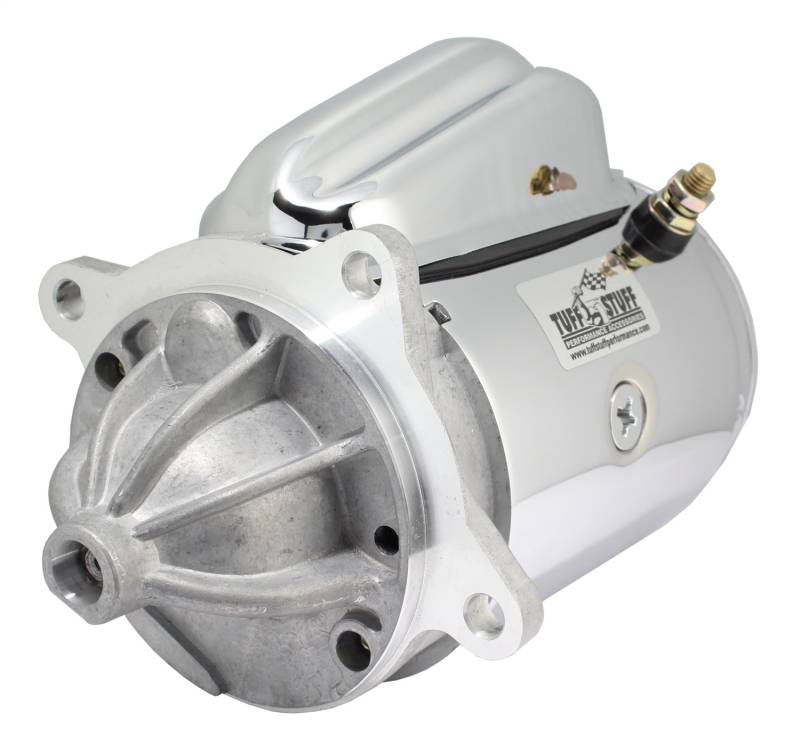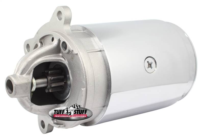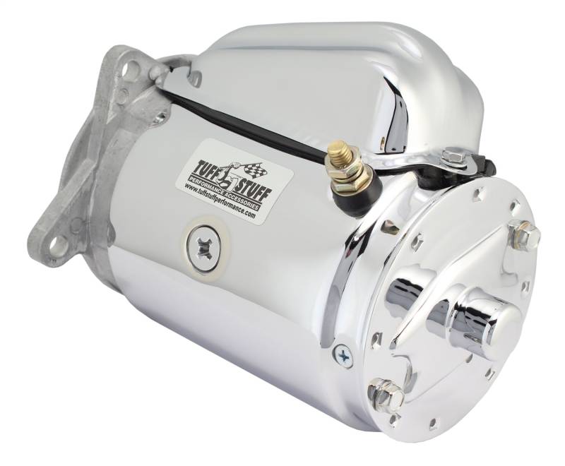 Tuff Stuff starters are hand made from premium quality new components - not remanufactured - and are quality built in USA. Most Gear Reduction style starters, which are considerably smaller than the OE starters, incorporate a mounting block that can be indexed to gain additional clearance. Starters include mounting bolts and shims where applicable. Ideal for high horsepower muscle cars, hot rods, trucks and daily-drivers. Finishes include chrome plated, zinc plated and powder coated.