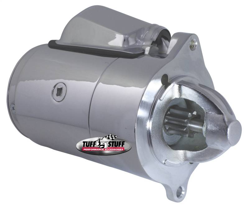 Tuff Stuff starters are hand made from premium quality new components - not remanufactured - and are quality built in USA. Most Gear Reduction style starters, which are considerably smaller than the OE starters, incorporate a mounting block that can be indexed to gain additional clearance. Starters include mounting bolts and shims where applicable. Ideal for high horsepower muscle cars, hot rods, trucks and daily-drivers. Finishes include chrome plated, zinc plated and powder coated.