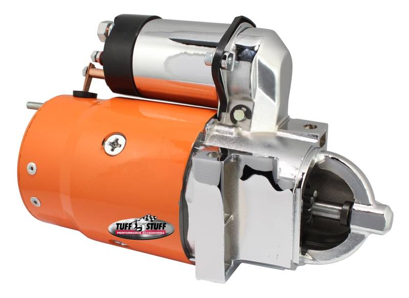 Tuff Stuff starters are hand made from premium quality new components - not remanufactured - and are quality built in USA. Most Gear Reduction style starters, which are considerably smaller than the OE starters, incorporate a mounting block that can be indexed to gain additional clearance. Starters include mounting bolts and shims where applicable. Ideal for high horsepower muscle cars, hot rods, trucks and daily-drivers. Finishes include chrome plated, zinc plated and powder coated.