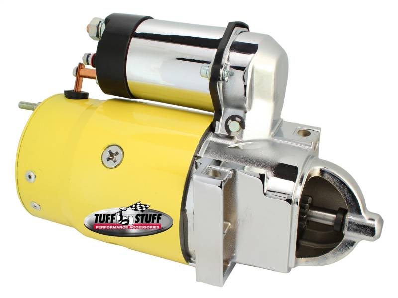 Tuff Stuff starters are hand made from premium quality new components - not remanufactured - and are quality built in USA. Most Gear Reduction style starters, which are considerably smaller than the OE starters, incorporate a mounting block that can be indexed to gain additional clearance. Starters include mounting bolts and shims where applicable. Ideal for high horsepower muscle cars, hot rods, trucks and daily-drivers. Finishes include chrome plated, zinc plated and powder coated.