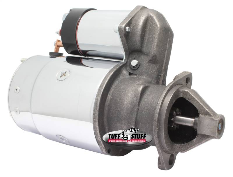 Tuff Stuff starters are hand made from premium quality new components - not remanufactured - and are quality built in USA. Most Gear Reduction style starters, which are considerably smaller than the OE starters, incorporate a mounting block that can be indexed to gain additional clearance. Starters include mounting bolts and shims where applicable. Ideal for high horsepower muscle cars, hot rods, trucks and daily-drivers. Finishes include chrome plated, zinc plated and powder coated.