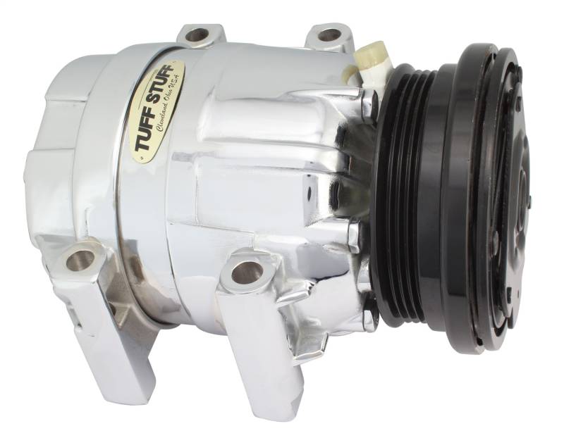 Multiple sizes of Sanden style compressors that utilize R12 or R134A refrigerant depending upon part number. Dedicated-fit compressors replace factory OEM units. Compressors include a 2V-groove, 4-groove or 6-groove pulley. Available finishes include chrome plated, polished aluminum, painted or as cast. Made from 100% new components, these are NEW, not remanufactured A/C compressors.