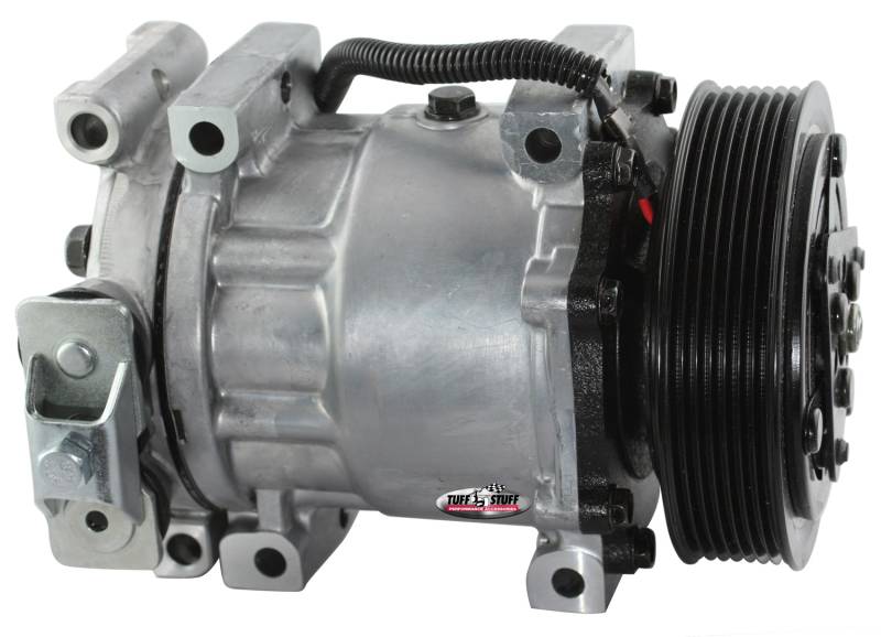 Multiple sizes of Sanden style compressors that utilize R12 or R134A refrigerant depending upon part number. Dedicated-fit compressors replace factory OEM units. Compressors include a 2V-groove, 4-groove or 6-groove pulley. Available finishes include chrome plated, polished aluminum, painted or as cast. Made from 100% new components, these are NEW, not remanufactured A/C compressors.
