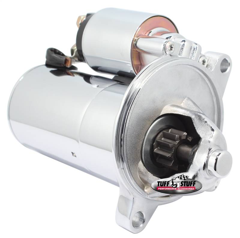 Tuff Stuff starters are hand made from premium quality new components - not remanufactured - and are quality built in USA. Most Gear Reduction style starters, which are considerably smaller than the OE starters, incorporate a mounting block that can be indexed to gain additional clearance. Starters include mounting bolts and shims where applicable. Ideal for high horsepower muscle cars, hot rods, trucks and daily-drivers. Finishes include chrome plated, zinc plated and powder coated.