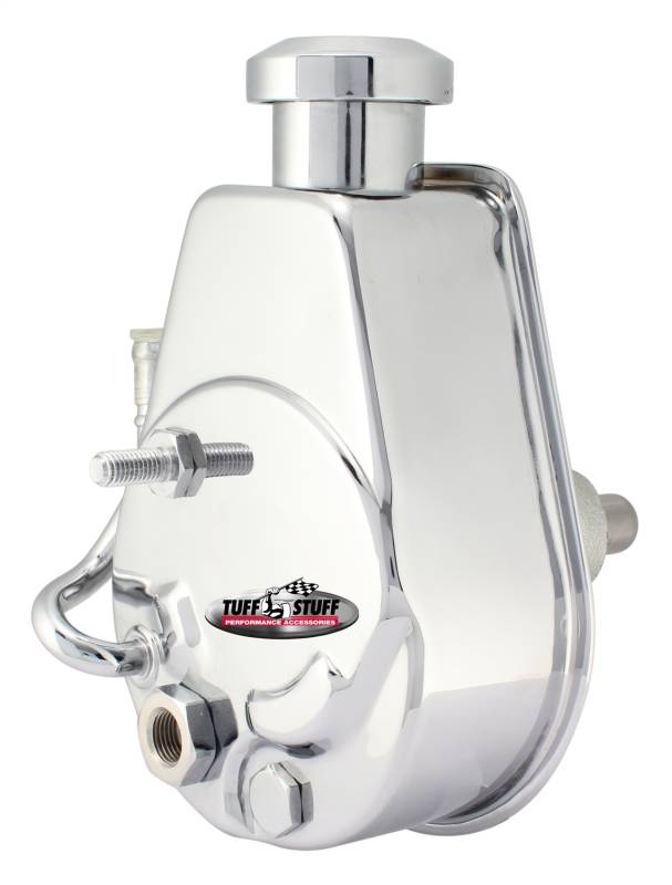 This GM style Saginaw pump features all new components including reservoir and pump assembly. It also includes a billet chrome cap, a new dipstick and hardware. Pumps are 1200 PSI rated @ 2.9-3.1 GPM to work with most gearbox systems. An optional 850 PSI valve is available for Mustang II rack and pinion systems.