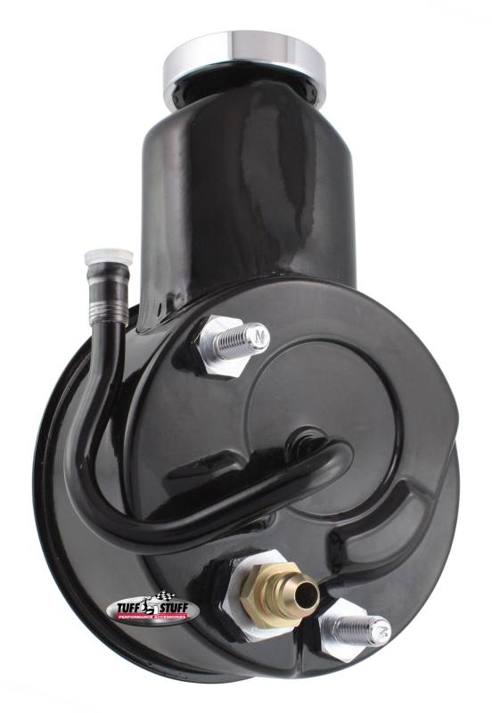 This GM style Saginaw pump features all new components including reservoir and pump assembly. It also includes a billet chrome cap, a new dipstick and hardware. Pumps are 1200 PSI rated @ 2.9-3.1 GPM to work with most gearbox systems. An optional 850 PSI valve is available for Mustang II rack and pinion systems.