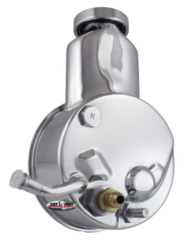 This GM style Saginaw pump features all new components including reservoir and pump assembly. It also includes a billet chrome cap, a new dipstick and hardware. Pumps are 1200 PSI rated @ 2.9-3.1 GPM to work with most gearbox systems. An optional 850 PSI valve is available for Mustang II rack and pinion systems.