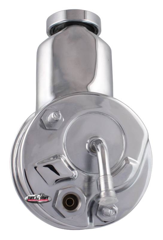 This GM style Saginaw pump features all new components including reservoir and pump assembly. It also includes a billet chrome cap, a new dipstick and hardware. Pumps are 1200 PSI rated @ 2.9-3.1 GPM to work with most gearbox systems. An optional 850 PSI valve is available for Mustang II rack and pinion systems.