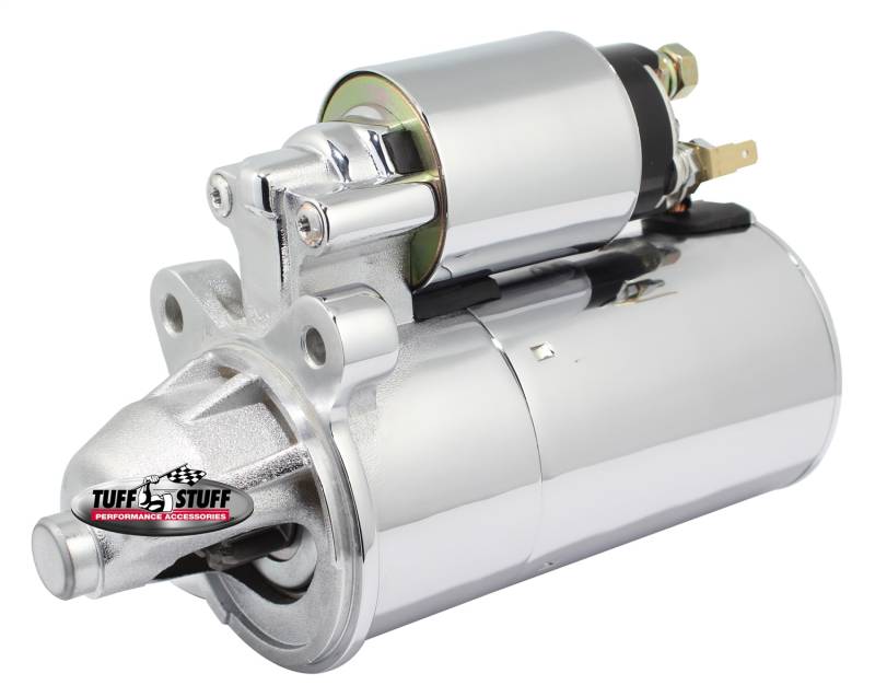 Tuff Stuff starters are hand made from premium quality new components - not remanufactured - and are quality built in USA. Most Gear Reduction style starters, which are considerably smaller than the OE starters, incorporate a mounting block that can be indexed to gain additional clearance. Starters include mounting bolts and shims where applicable. Ideal for high horsepower muscle cars, hot rods, trucks and daily-drivers. Finishes include chrome plated, zinc plated and powder coated.