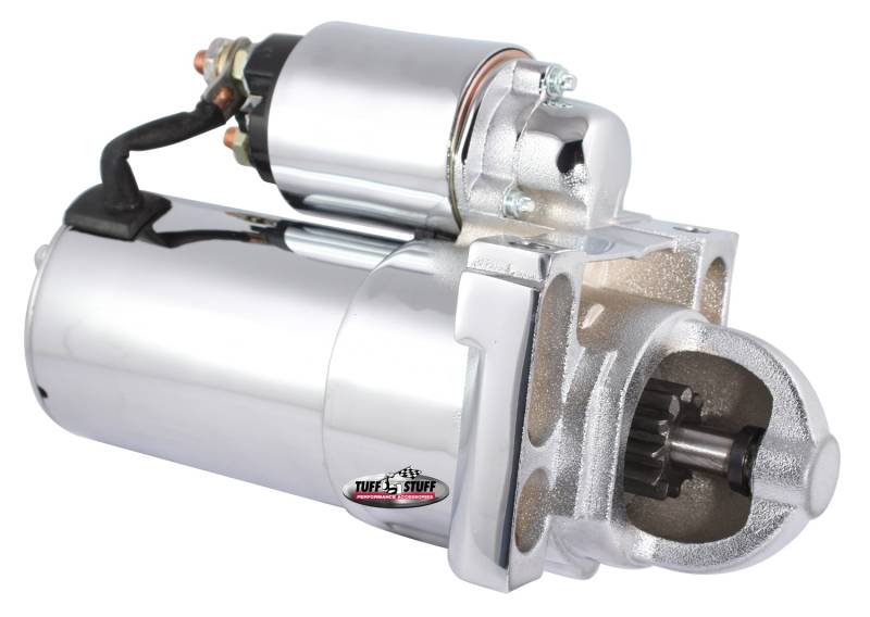 Tuff Stuff starters are hand made from premium quality new components - not remanufactured - and are quality built in USA. Most Gear Reduction style starters, which are considerably smaller than the OE starters, incorporate a mounting block that can be indexed to gain additional clearance. Starters include mounting bolts and shims where applicable. Ideal for high horsepower muscle cars, hot rods, trucks and daily-drivers. Finishes include chrome plated, zinc plated and powder coated.