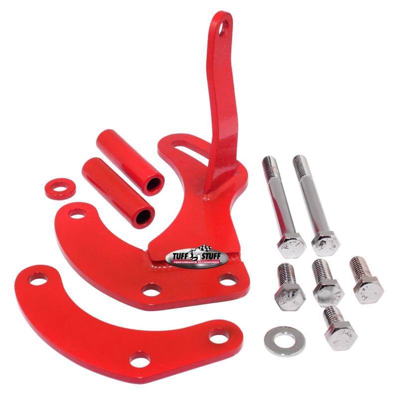 Power Steering Pump Bracket Short Fits Tuff Stuff Saginaw Style Power Steering Pumps w/Hardware Red Powdercoat 6504BRED