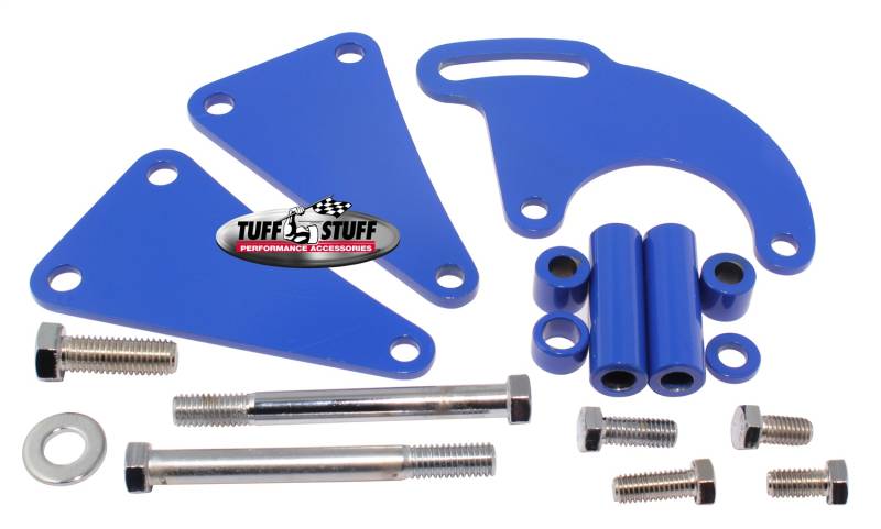 Power Steering Pump Bracket Long Fits Tuff Stuff Saginaw Style Power Steering Pumps w/Hardware Blue Powdercoat 6507BBLUE