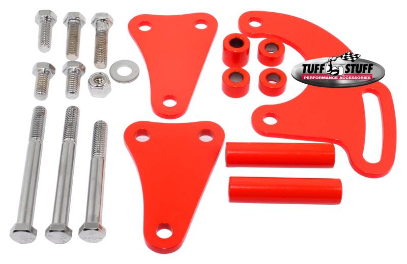 Power Steering Pump Bracket Long Fits Tuff Stuff Saginaw Style Power Steering Pumps w/Hardware Red Powdercoat 6508BRED