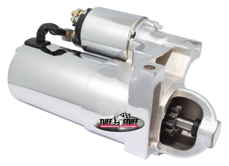 Tuff Stuff starters are hand made from premium quality new components - not remanufactured - and are quality built in USA. Most Gear Reduction style starters, which are considerably smaller than the OE starters, incorporate a mounting block that can be indexed to gain additional clearance. Starters include mounting bolts and shims where applicable. Ideal for high horsepower muscle cars, hot rods, trucks and daily-drivers. Finishes include chrome plated, zinc plated and powder coated.