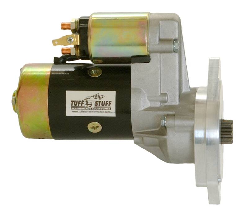 Tuff Stuff starters are hand made from premium quality new components - not remanufactured - and are quality built in USA. Most Gear Reduction style starters, which are considerably smaller than the OE starters, incorporate a mounting block that can be indexed to gain additional clearance. Starters include mounting bolts and shims where applicable. Ideal for high horsepower muscle cars, hot rods, trucks and daily-drivers. Finishes include chrome plated, zinc plated and powder coated.