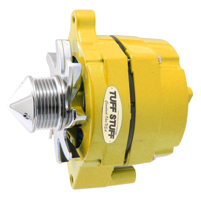 All Tuff Stuff alternators are hand built in Cleveland, Ohio and are tested to meet or exceed OEM specifications. All Tuff Stuff alternators are made from 100% new components and carry a one year limited warranty. Tuff Stuff has alternator applications for virtually all muscle cars, hot rods, customs and light trucks in just about every finish imaginable. Available in chrome plated, polished aluminum, powder coated and plain as cast finishes. All alternators are for 12 volt, negative ground systems, except where noted.