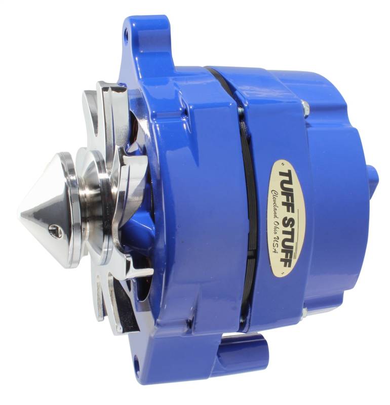 All Tuff Stuff alternators are hand built in Cleveland, Ohio and are tested to meet or exceed OEM specifications. All Tuff Stuff alternators are made from 100% new components and carry a one year limited warranty. Tuff Stuff has alternator applications for virtually all muscle cars, hot rods, customs and light trucks in just about every finish imaginable. Available in chrome plated, polished aluminum, powder coated and plain as cast finishes. All alternators are for 12 volt, negative ground systems, except where noted.