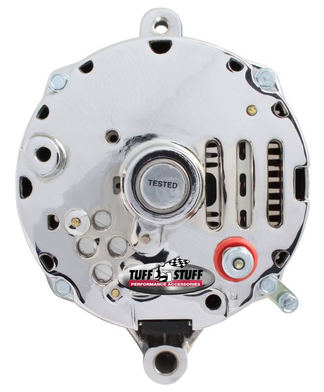 All Tuff Stuff alternators are hand built in Cleveland, Ohio and are tested to meet or exceed OEM specifications. All Tuff Stuff alternators are made from 100% new components and carry a one year limited warranty. Tuff Stuff has alternator applications for virtually all muscle cars, hot rods, customs and light trucks in just about every finish imaginable. Available in chrome plated, polished aluminum, powder coated and plain as cast finishes. All alternators are for 12 volt, negative ground systems, except where noted.