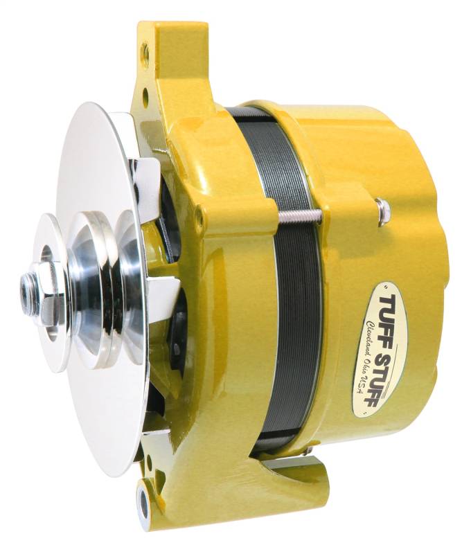 All Tuff Stuff alternators are hand built in Cleveland, Ohio and are tested to meet or exceed OEM specifications. All Tuff Stuff alternators are made from 100% new components and carry a one year limited warranty. Tuff Stuff has alternator applications for virtually all muscle cars, hot rods, customs and light trucks in just about every finish imaginable. Available in chrome plated, polished aluminum, powder coated and plain as cast finishes. All alternators are for 12 volt, negative ground systems, except where noted.