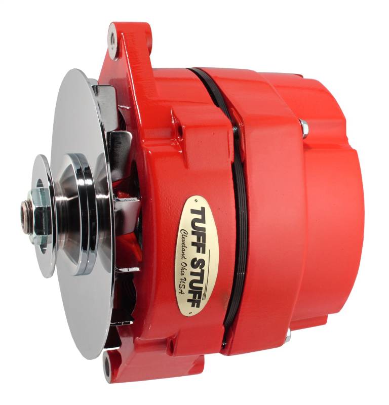 All Tuff Stuff alternators are hand built in Cleveland, Ohio and are tested to meet or exceed OEM specifications. All Tuff Stuff alternators are made from 100% new components and carry a one year limited warranty. Tuff Stuff has alternator applications for virtually all muscle cars, hot rods, customs and light trucks in just about every finish imaginable. Available in chrome plated, polished aluminum, powder coated and plain as cast finishes. All alternators are for 12 volt, negative ground systems, except where noted.