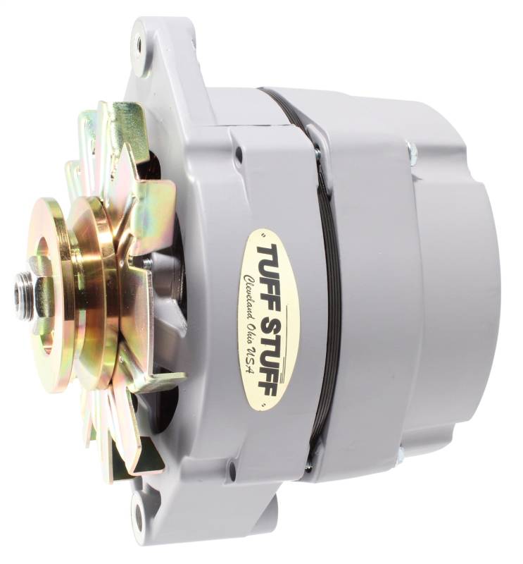 All Tuff Stuff alternators are hand built in Cleveland, Ohio and are tested to meet or exceed OEM specifications. All Tuff Stuff alternators are made from 100% new components and carry a one year limited warranty. Tuff Stuff has alternator applications for virtually all muscle cars, hot rods, customs and light trucks in just about every finish imaginable. Available in chrome plated, polished aluminum, powder coated and plain as cast finishes. All alternators are for 12 volt, negative ground systems, except where noted.
