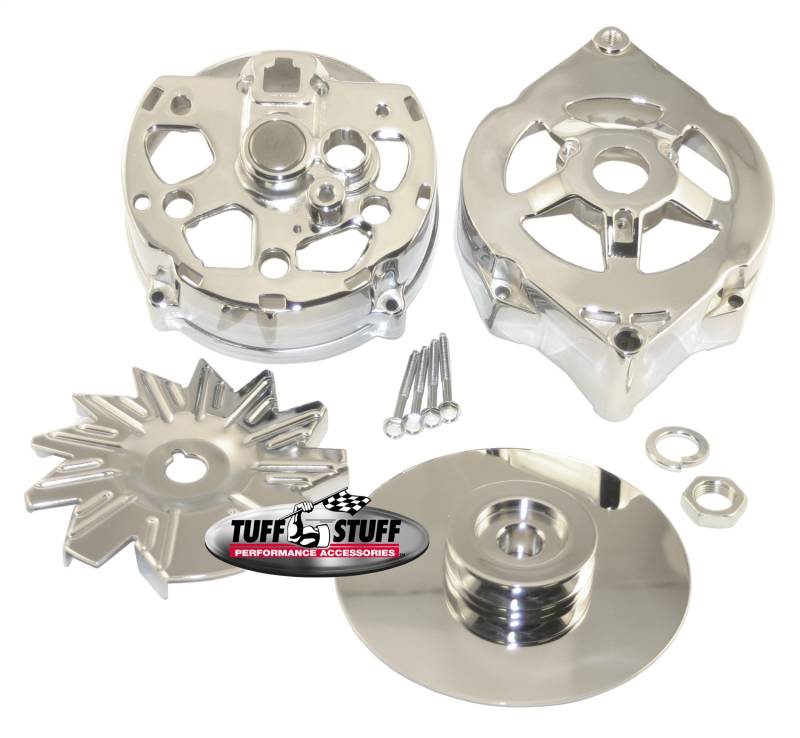 Alternator Case Kit Fits GM 10DN And Tuff Stuff Alternator PN[7102] Incl. Front And Rear Housings/Fan/Pulley/Nut/Lockwashers/Thru Bolts Chrome Plated 7500B