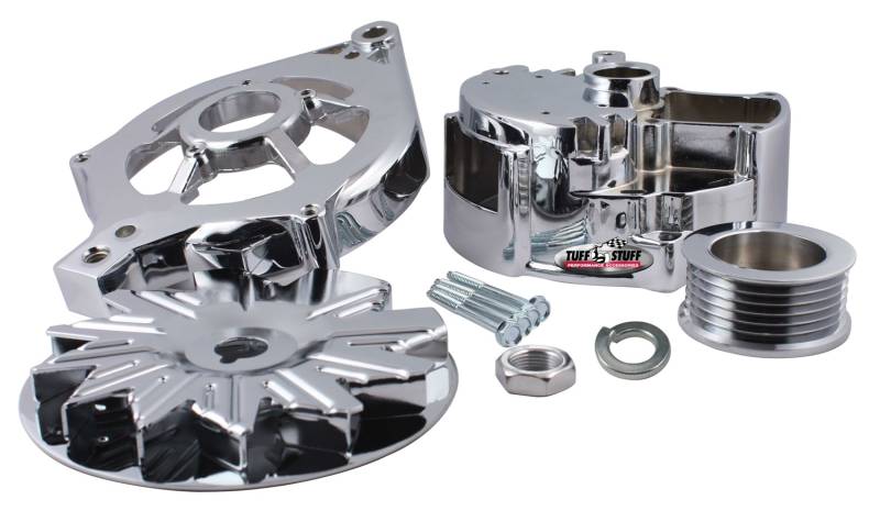 Alternator Case Kit Fits Ford 2GEN And Tuff Stuff Alternator PN[7716] Incl. Front And Rear Housings/Fan/Pulley/Nut/Lockwashers/Thru Bolts Chrome Plated 7500E