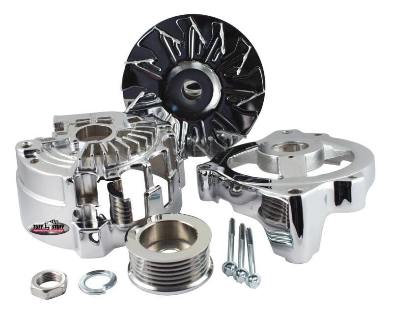 Alternator Case Kit Fits GM CS130 w/6 Groove Pulley And Tuff Stuff Alternator PN[7866] Incl. Front And Rear Housings/Fan/Pulley/Nut/Lockwashers/Thru Bolts Chrome Plated 7500G