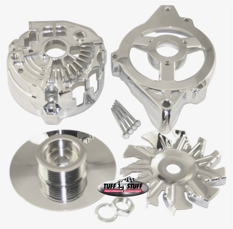 Alternator Case Kit Fits GM CS130 w/6 Groove Pulley And Tuff Stuff Alternator PN[7935] Incl. Front And Rear Housings/Fan/Pulley/Nut/Lockwashers/Thru Bolts Chrome Plated 7500H