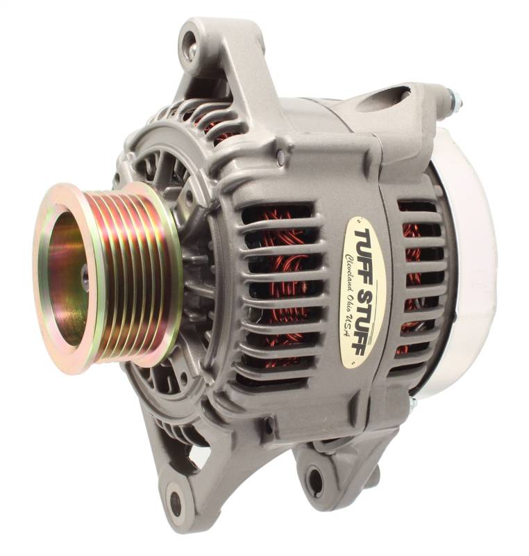 All Tuff Stuff alternators are hand built in Cleveland, Ohio and are tested to meet or exceed OEM specifications. All Tuff Stuff alternators are made from 100% new components and carry a one year limited warranty. Tuff Stuff has alternator applications for virtually all muscle cars, hot rods, customs and light trucks in just about every finish imaginable. Available in chrome plated, polished aluminum, powder coated and plain as cast finishes. All alternators are for 12 volt, negative ground systems, except where noted.