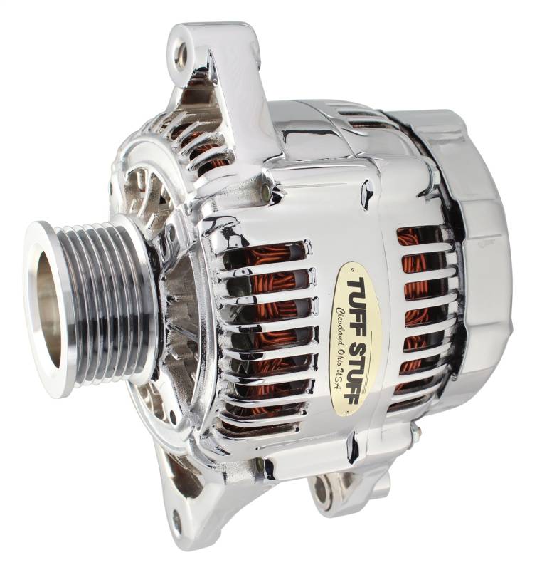 All Tuff Stuff alternators are hand built in Cleveland, Ohio and are tested to meet or exceed OEM specifications. All Tuff Stuff alternators are made from 100% new components and carry a one year limited warranty. Tuff Stuff has alternator applications for virtually all muscle cars, hot rods, customs and light trucks in just about every finish imaginable. Available in chrome plated, polished aluminum, powder coated and plain as cast finishes. All alternators are for 12 volt, negative ground systems, except where noted.