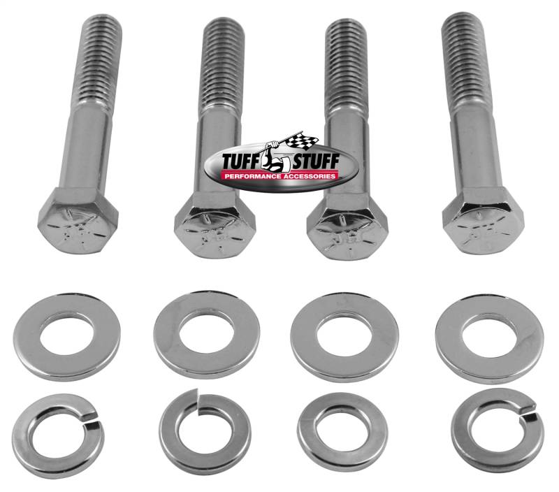 Water Pump Bolt Kit Chrome Hex Incl. (4) 3/4 in.-16x2 1/4 in. Bolts/(4) Lock And (4) Flat Washers Fits Chevy Small/Big Block w/Long Water Pump PN[1449/1461/1511] 7678A