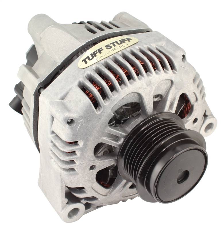 All Tuff Stuff alternators are hand built in Cleveland, Ohio and are tested to meet or exceed OEM specifications. All Tuff Stuff alternators are made from 100% new components and carry a one year limited warranty. Tuff Stuff has alternator applications for virtually all muscle cars, hot rods, customs and light trucks in just about every finish imaginable. Available in chrome plated, polished aluminum, powder coated and plain as cast finishes. All alternators are for 12 volt, negative ground systems, except where noted.